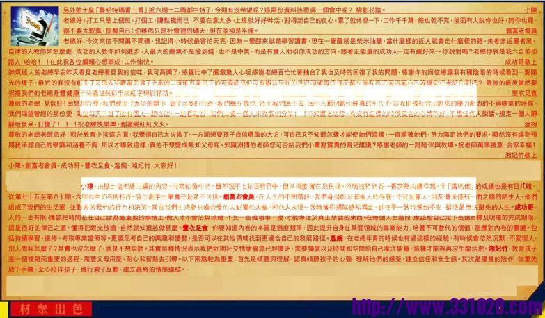 →〖小陳〗:由貼土皇老總主編的內容經常都會中特。雖然說不上是百發百中,但準繩度實在是很高。魯明的特碼番一番當然成績卓越,而「講碼佬」的成績也是有目共睹,從第七十五至第八十期,六期也中了四期特肖,各位高手主筆實在是功不可抹。