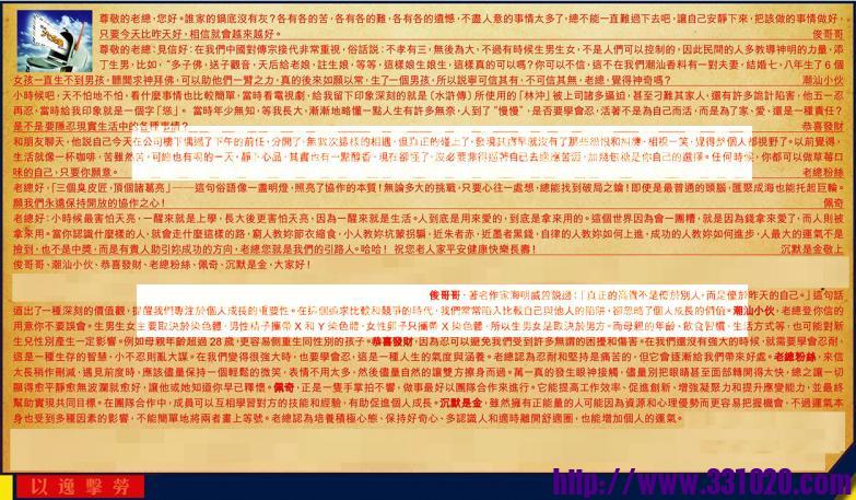 【6】.老總好:小時候最害怕天亮,一醒來就是上學,長大後更害怕天亮,因為一醒來就是生活。人到底是用來爱的,到底是拿來用的。這個世界因為會一團糟,就是因為錢拿來愛了,而人則被拿來用。當你認識什麼樣的人,就會走什麼這樣的路,窮人教弥節衣縮食,小人教你坑蒙拐騙,近朱者赤,近墨者黑錢,自律的人教你如何上進,成功的人教你如何進步,人最大的運氣不是撿到,也不是中獎,而是有贵人助引你成功的方向,老總您就是我們的引路人。哈哈!祝您老人家平安健康快樂長壽! 沉默是金敬上