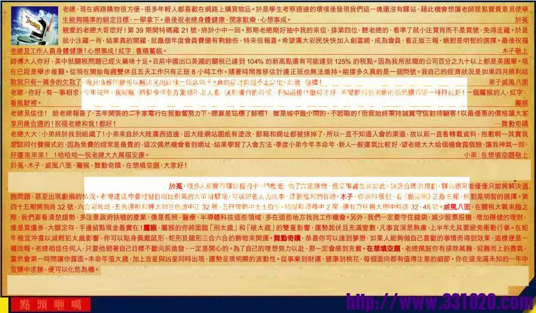 【2】.親愛的老總大哥您好!第39期開特碼雞21號,終於小中一回。那期老總剛好抽中我的來信,排第四位,聽老總的,看準了就小注買肖而不是買號,免得走雞。於是就小注雞一肖,結果真的開雞,就赢個年度會員費還有剩餘些,特來信報喜。希望廣大彩民快快加入創富網,成為會員,看正版三報,絕對是明智的選擇。最後祝福老總及工作人员身體健康!心想事成!紅字:養精蓄銳。 木子敬上